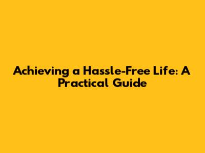 Achieving A Hassle-Free Life: A Practical Guide
