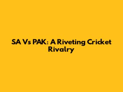SA Vs PAK: A Riveting Cricket Rivalry