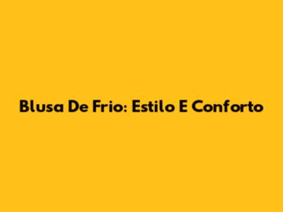 Blusa De Frio: Estilo E Conforto