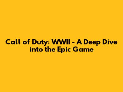Call Of Duty: WWII - A Deep Dive Into The Epic Game