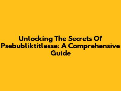 Unlocking The Secrets Of Psebubliktitlesse: A Comprehensive Guide