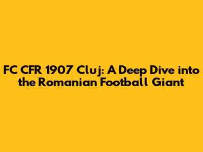 Hey guys, let's dive into the world of FC CFR 1907 Cluj, a football club that's been making waves in Romanian football for years! This article is all about giving you the lowdown on everything you need to know about this team, from their history and achievements to their current squad and what makes them tick. Whether you're a die-hard fan or just curious about Romanian football, you're in the right place. Get ready to explore the fascinating story of FC CFR 1907 Cluj, a club that has become a powerhouse in its league and a force to be reckoned with.