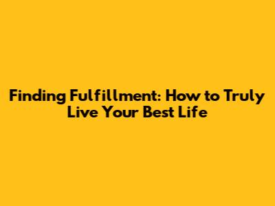 Finding Fulfillment: How To Truly Live Your Best Life