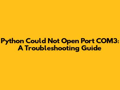 By following these steps, you should be able to track down the cause of the "Python could not open port COM3" error and get your serial communication up and running. Good luck, and happy coding!