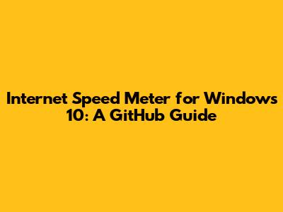 By following these steps and consulting the project's documentation, you should be able to successfully install and configure an internet speed meter from GitHub on your Windows 10 machine. Remember to always exercise caution and to thoroughly research any project before installing it on your system.