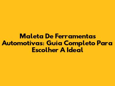 Maleta De Ferramentas Automotivas: Guia Completo Para Escolher A Ideal