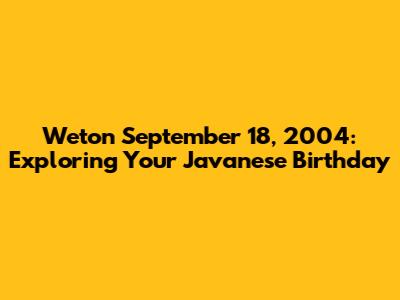 Weton September 18, 2004: Exploring Your Javanese Birthday