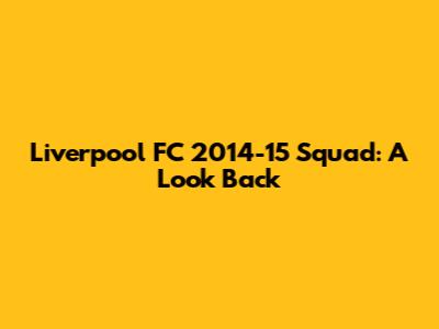 What's up, football fanatics! Today, we're diving deep into a season that was, to put it mildly, a bit of a rollercoaster for Liverpool FC – the 2014-15 campaign. This was a period filled with anticipation, new signings, and a few heartbreak moments. If you're a Liverpool supporter, you'll remember the hype surrounding this squad, especially after the near-miss title charge of the previous season. So, grab your favorite scarf, settle in, and let's take a stroll down memory lane to dissect the Liverpool FC 2014-15 squad.