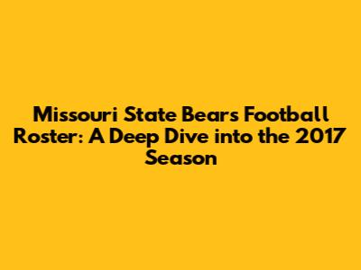 Hey sports fanatics! Ever wondered what went down with the Missouri State Bears football squad back in 2017? Well, buckle up, because we're about to dive deep into the roster, taking a look at the players who battled it out on the gridiron. We'll be breaking down the key players, the positions, and maybe even reminiscing about some unforgettable moments from that season. So, grab your game-day snacks and get ready for a trip down memory lane. This article is your ultimate guide to the 2017 Missouri State Bears football roster, giving you the inside scoop on the team's composition and the athletes who made up the heart and soul of the squad. Whether you're a die-hard Bears fan or just a curious football enthusiast, this is the place to be. Let's get started, shall we?