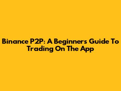 Binance P2P: A Beginner's Guide To Trading On The App