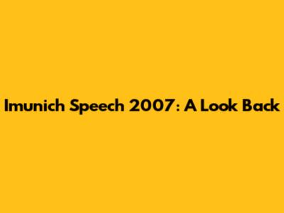 Imunich Speech 2007: A Look Back
