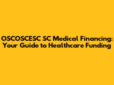 OSCOSCESC SC Medical Financing: Your Guide To Healthcare Funding