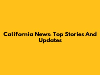 California News: Top Stories And Updates