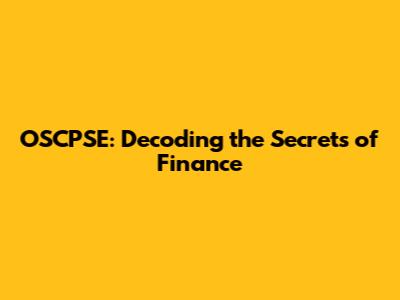 OSCPSE: Decoding The Secrets Of Finance