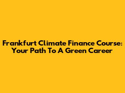 Frankfurt Climate Finance Course: Your Path To A Green Career