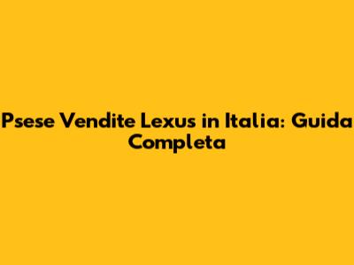 Psese Vendite Lexus In Italia: Guida Completa