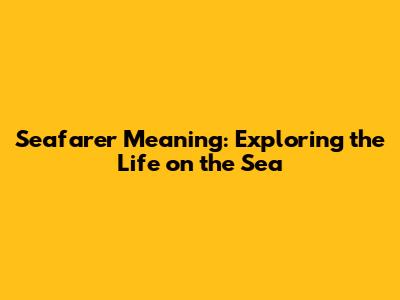Seafarer Meaning: Exploring The Life On The Sea