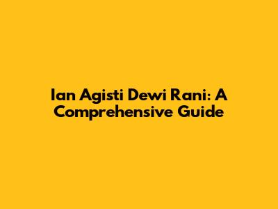 Ian Agisti Dewi Rani: A Comprehensive Guide