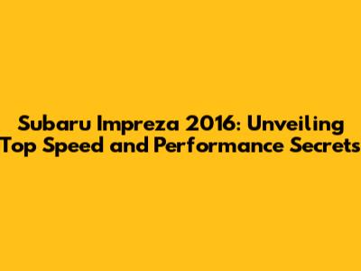 Subaru Impreza 2016: Top Speed & Performance Insights