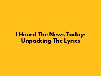 I Heard The News Today: Unpacking The Lyrics