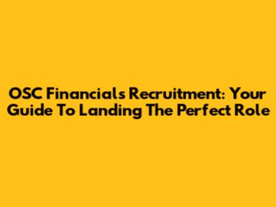 OSC Financials Recruitment: Your Guide To Landing The Perfect Role