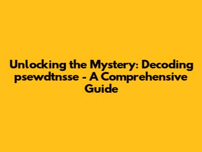 Unlocking The Mystery: Decoding 'psewdtnsse' - A Comprehensive Guide