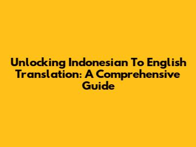 Unlocking Indonesian To English Translation: A Comprehensive Guide